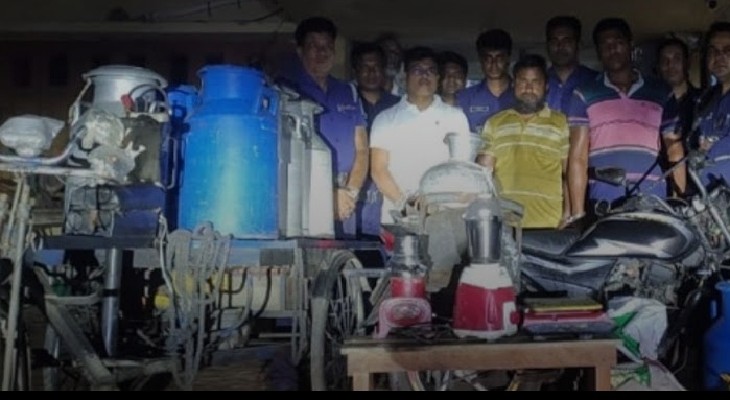 পুলিশ জানায়, গোপন সংবাদের ভিত্তিতে শুক্রবার রাতে তালা উপজেলার শিবপুর গ্রামের সিরাজুল ইসলামের বাড়িতে অভিযান চালানো হয়। এ সময় সিরাজুলের গোয়ালঘরের বারান্দা থেকে একটি ব্লেন্ডার মেশিন, ৭টি খালি ড্রাম, ভেজাল দুধ তৈরির পাউডার, তেল, একটি মোটরচালিত ভ্যান, একটি ১০০ সিসি প্লাটিনা মোটরসাইকেলসহ ২৮০ লিটার ভেজাল দুধ জব্দ করা হয়। এ সময় ভেজাল দুধ তৈরি করে বাজারে বিক্রি করার অভিযোগে সিরাজুল ইসলাম ও সোহাগ ঘোষকে গ্রেপ্তার করা হয়।