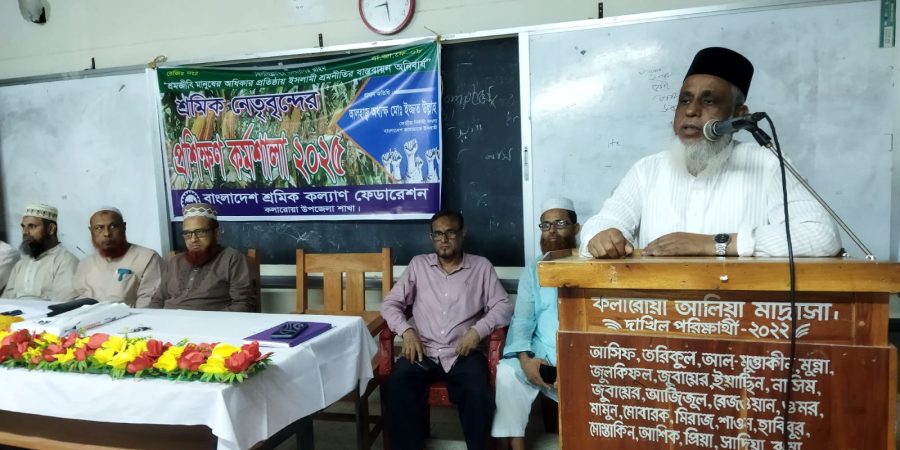 বুধবার (৯ জুলাই) বিকালে কলারোয়া আলিয়া মাদ্রাসা অডিটোরিয়ামে বাংলাদেশ শ্রমিক কল্যাণ ফেডারেশন কলারোয়া উপজেলা শাখার সভাপতি মাওলানা রুহুল কুদ্দুস এর সভাপতিত্বে ও সেক্রেটারী মাওলানা মশিউর রহমানের সঞ্চালনায় এ প্রশিক্ষণ কর্মশালা অনুষ্ঠিত হয়।
