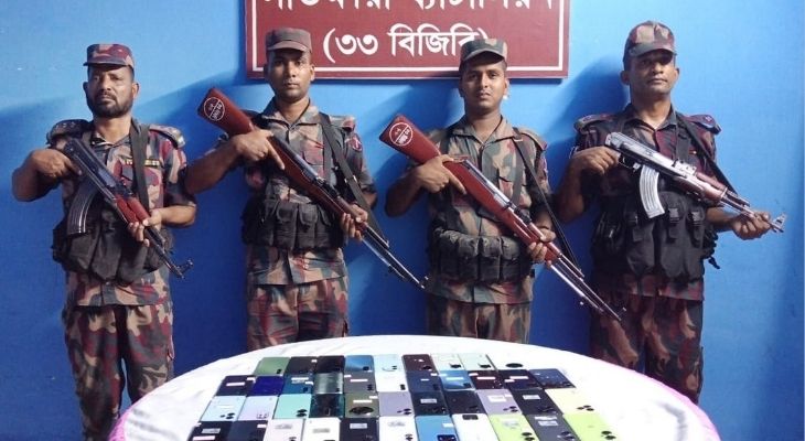 সাতক্ষীরা সীমান্তে অভিযান চালিয়ে ভারতীয় স্মার্টফোনসহ বিপুল পরিমাণ চোরাচালান পণ্য জব্দ করেছে বর্ডার গার্ড বাংলাদেশ (বিজিবি)।