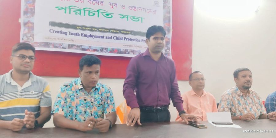 কার্ক ইন এক্টি’র অর্থায়নে ও সিসিডিবি সাতক্ষীরার বাস্তবায়নে প্রকল্পের তৃতীয় বর্ষের যুব ও ওস্তাদগনের পরিচিতি সভা সোমবার (১৫ সেপ্টেম্বর ২০২৫) কলারোয়া পৌরসভার হলরুমে অনুষ্ঠিত হয়।