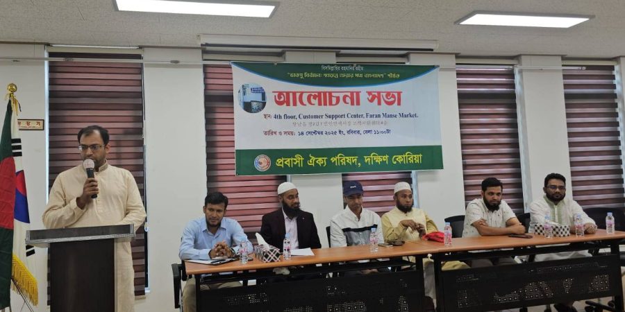 রোববার (১৪ সেপ্টেম্বর) সকাল ১১টায় দক্ষিণ কোরিয়ার হোয়াসং সিটির ফারান মানসে মার্কেটের কাস্টমার সাপোর্ট সেন্টারে ৪র্থ তলায় প্রবাসী ঐক্য পরিষদ, দক্ষিণ কোরিয়ার উদ্যোগে এ আলোচনা সভা অনুষ্ঠিত হয়।