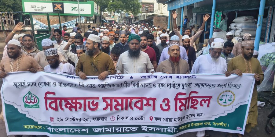 পি.আর পদ্ধতিতে নির্বাচনসহ ৫ দফা দাবিতে কলারোয়া উপজেলা জামায়াতের বিক্ষোভ
