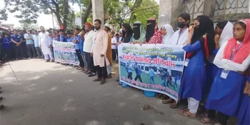 সাতক্ষীরায় বিএনপি-ছাত্রদল নেতাদের গ্রেপ্তারের দাবিতে মানববন্ধন